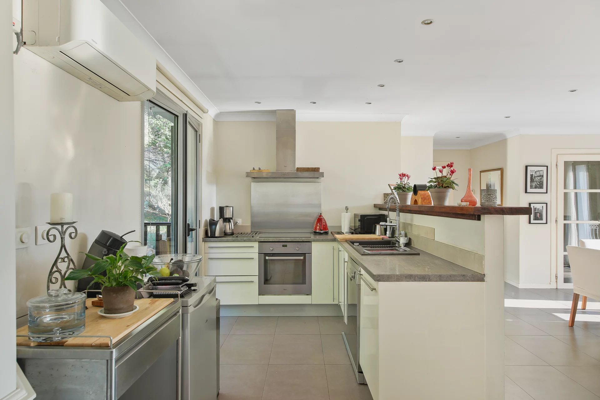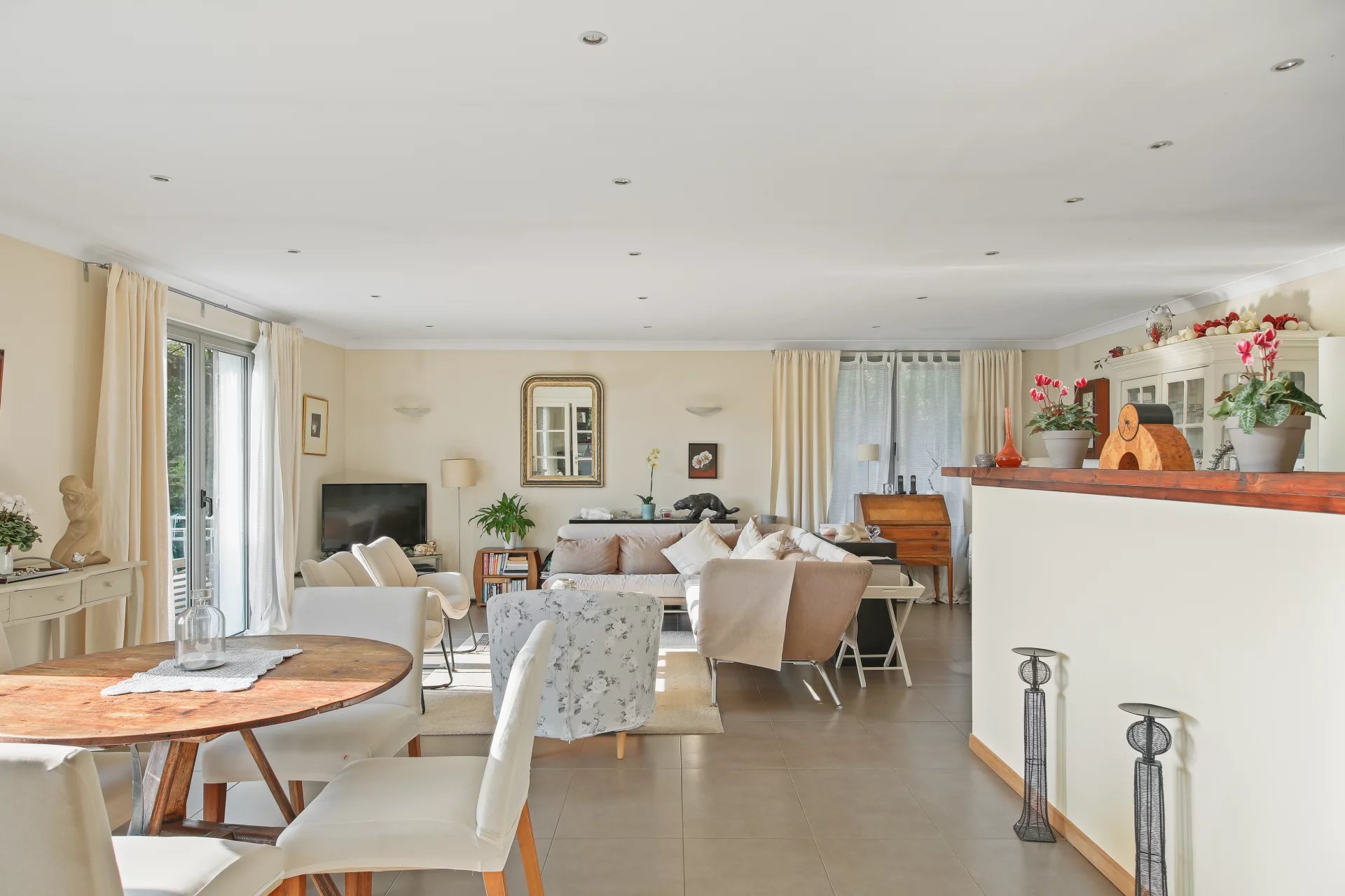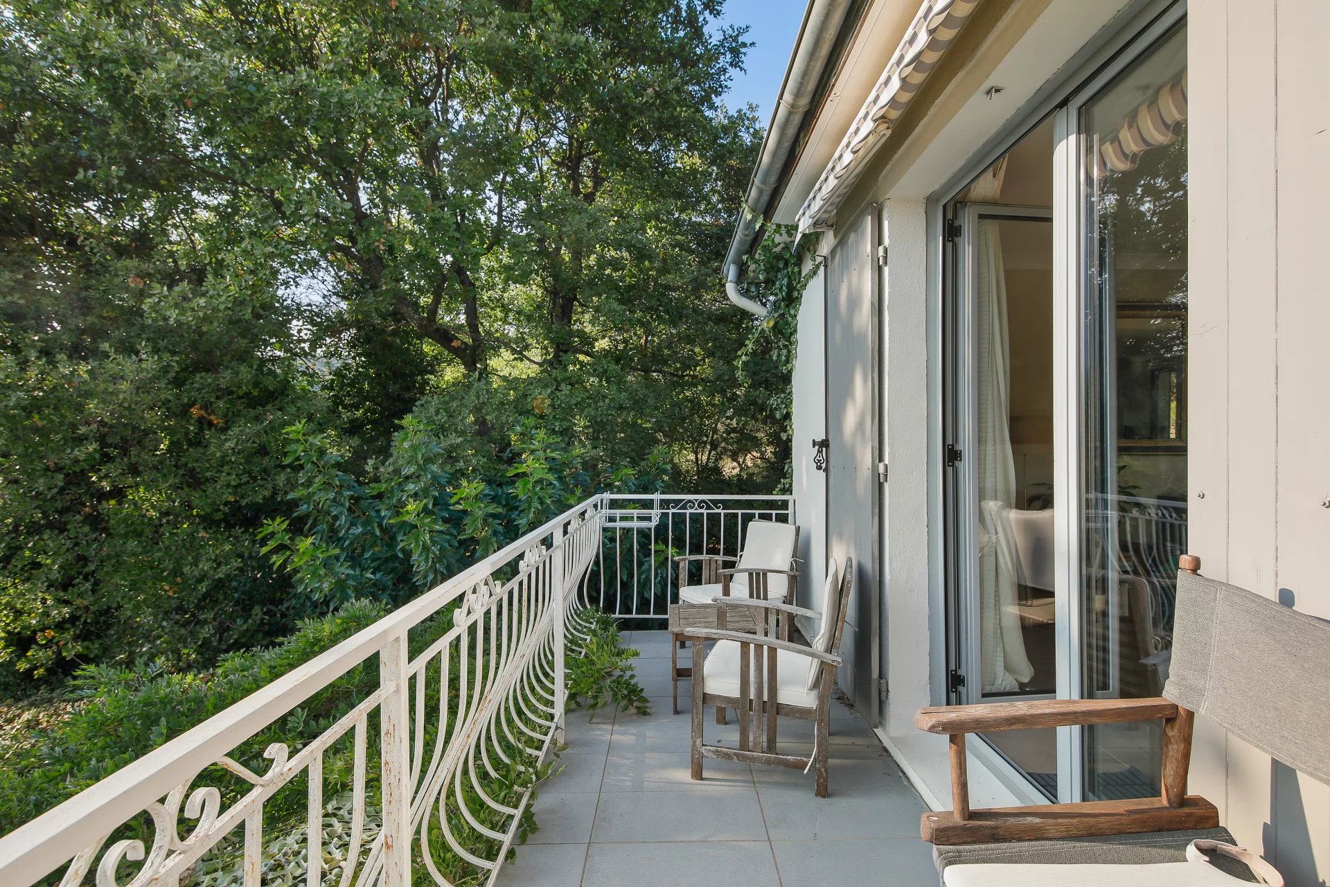 En étage, un hall d'entrée donnant sur une belle pièce de vie de 50 m² traversante avec une cuisine US s'ouvrant sur deux terrasses , une grande chambre parentale avec une salle de bain ensuite. La cerise sur le gâteau est une annexe avec une chambre en suite avec salle d'eau totalement indépendante pouvant accueillir vos invités.