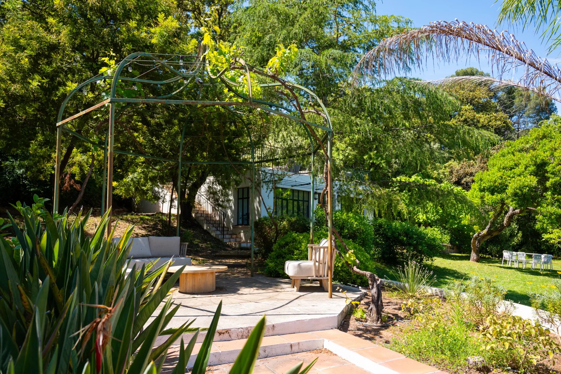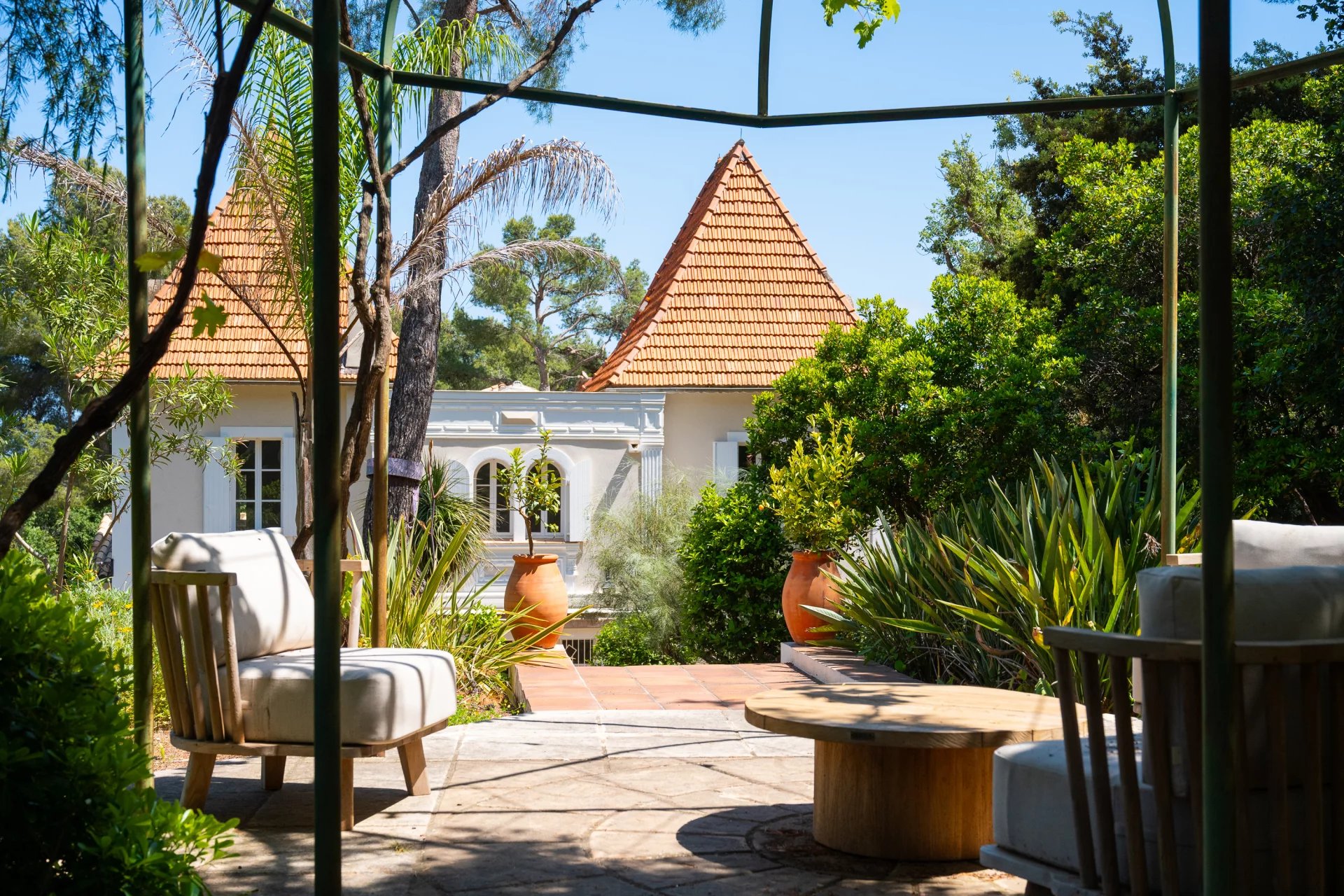 Une vaste entrée dessert un salon en rotonde qui mène à une cuisine ouverte superbement aménagée avec un bel espace dînatoire donnant accès au jardin. Au même niveau un bureau/chambre avec salle d’eau attenante et un second séjour, espace cocooning avec cheminée.